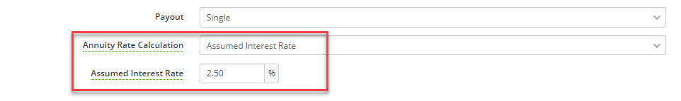 The software's default option, on the other hand, allows the software to 'derive' an annuity rate by using an Assumed Interest Rate.