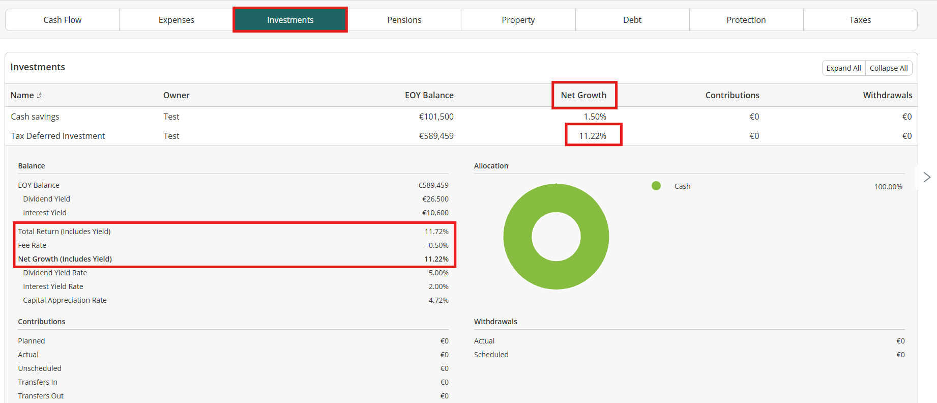 By clicking on the particular Investment/Pension to expand the information further you can view the Gross Return, the Fee rate and the Net Return needed.