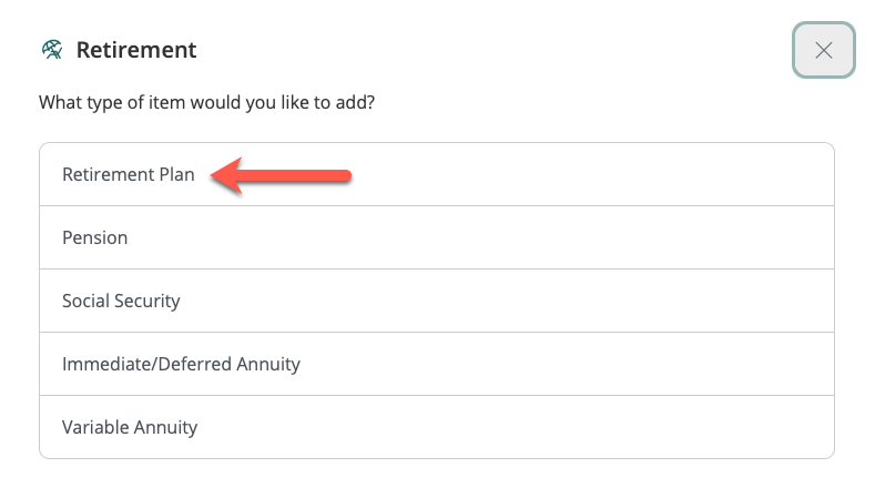 Click the (+) from the dashboard and select Retirement Plan.