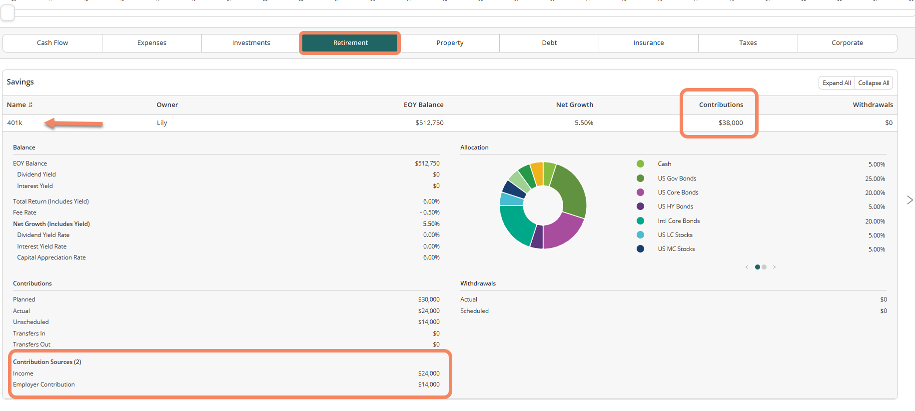 Tip: If your client changes their retirement age, contribution assumptions will update automatically.