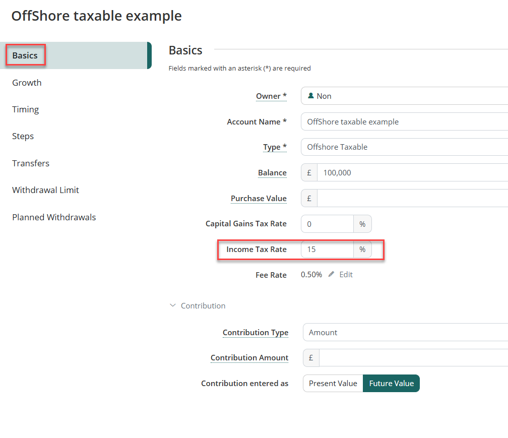 The Offshore taxable investment type allows you to input an investment which doesn't use the UK rules but uses custom tax rates instead.