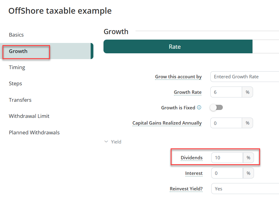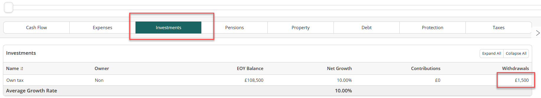 The tax calculated is based on the gain (when a withdrawal is made) or on the income yield generated within the investment. For this latter option this relates to the Dividend or Interest yield shown in the Growth screen.