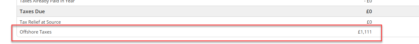 Note: taxes on Offshore Taxable investments can also be seen at the bottom of Year View > Taxes and can be seen in the Taxes > Detailed chart.