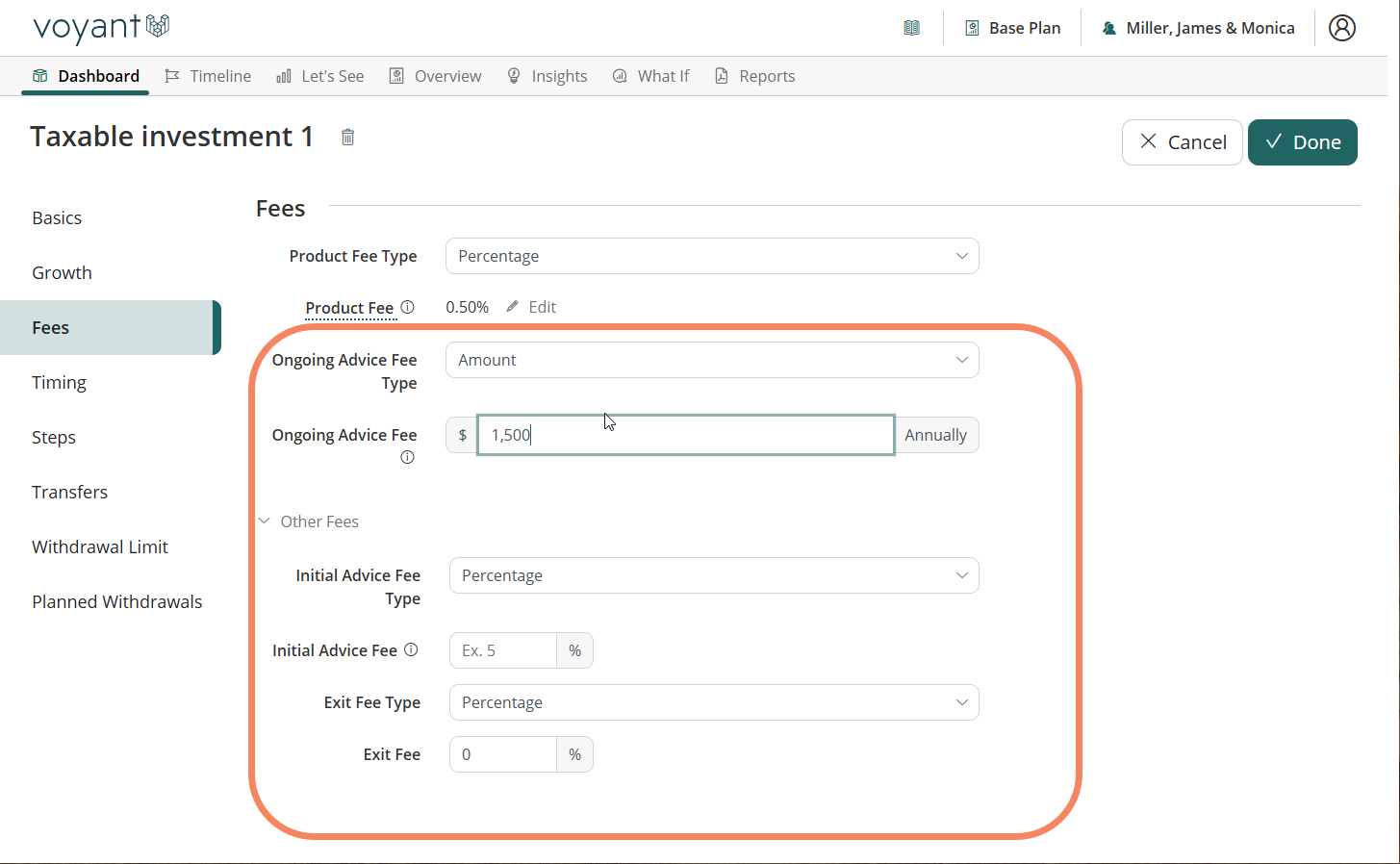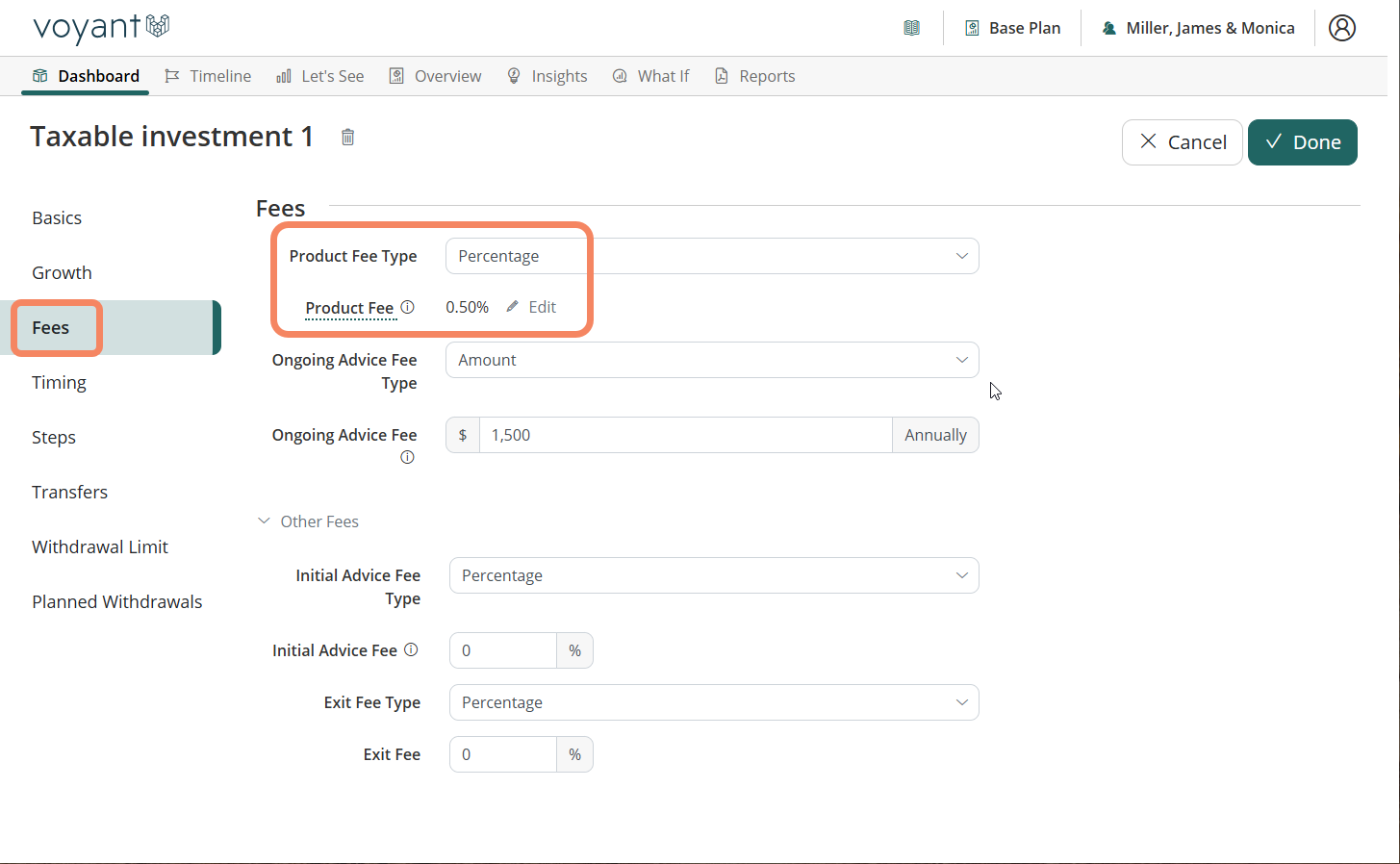 Note: For Client's with White Labels if you would like to update your preferences to add in the various types of fee rates, please contact support@planwithvoyant.com for an update to your White Label.