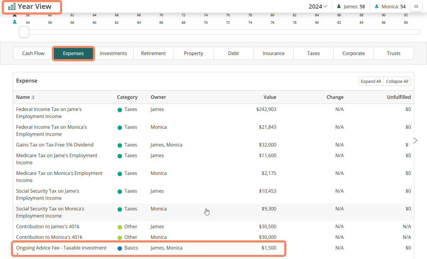 Highlight your role – Modeling adviser fees as expenses makes the value of advice more visible, reinforcing the importance of your ongoing service.