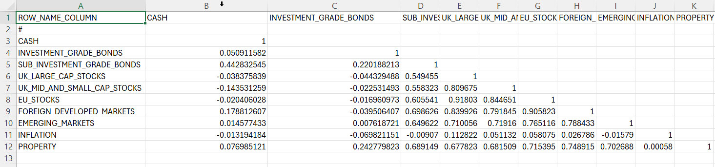 This file defines the correlation matrix between asset classes.