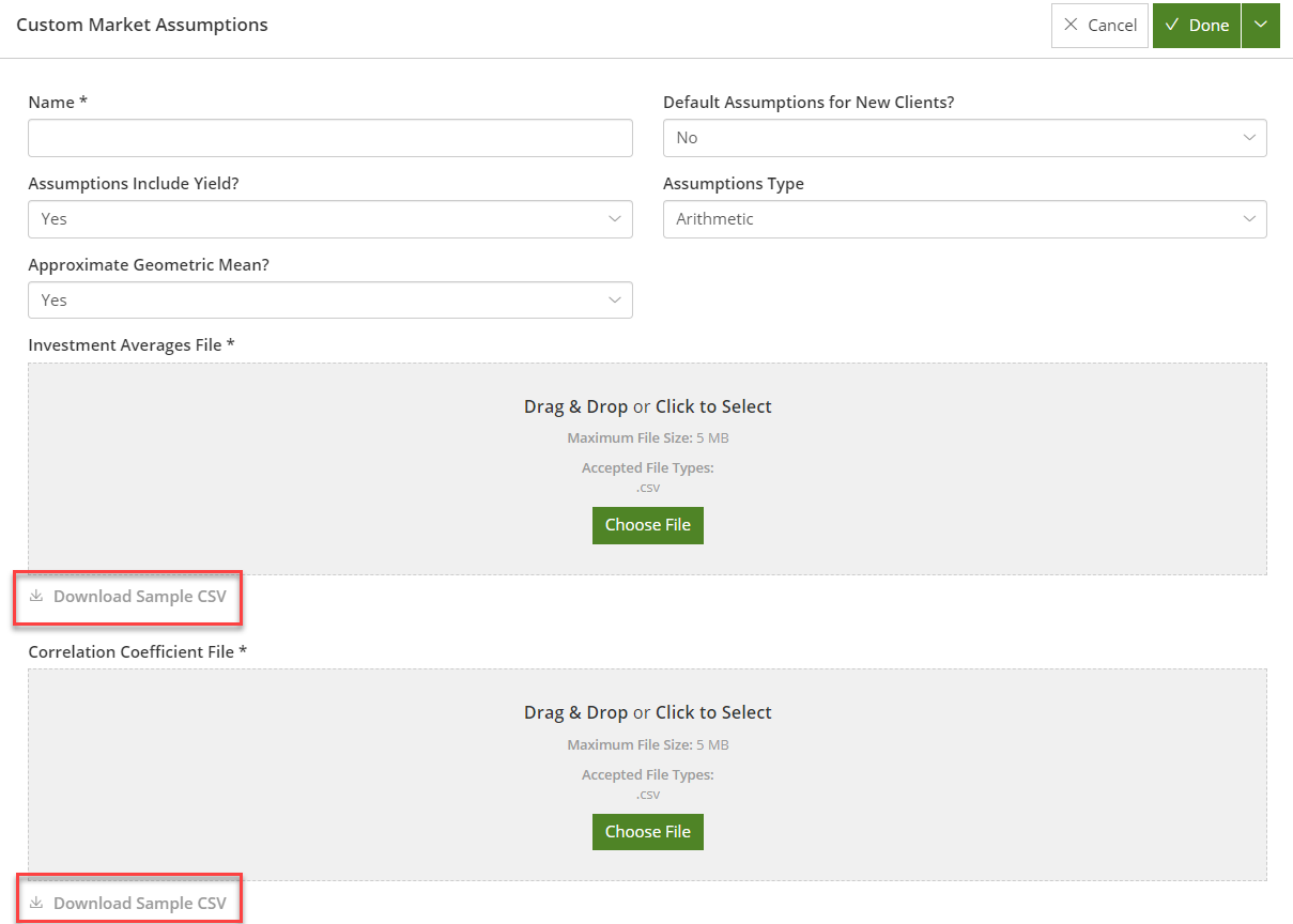 π Sample files for your region can be obtained by emailing support@planwithvoyant.com or on the Custom Market Assumptions input screen. Configurations > Custom Market Assumptions