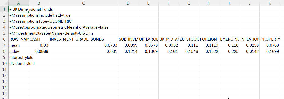This file defines each asset class and its return assumptions.