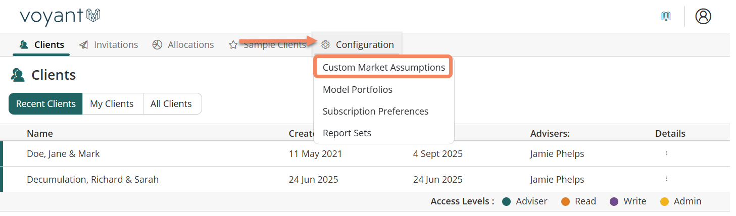 Quick Reference: Custom Market Assumptions in Voyant