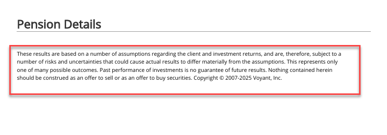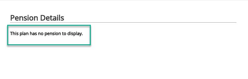 If no pension in the pensions report, it keeps it's own section saying 'This plan has no pension to display'. Disclaimer shown on following page under correct header.